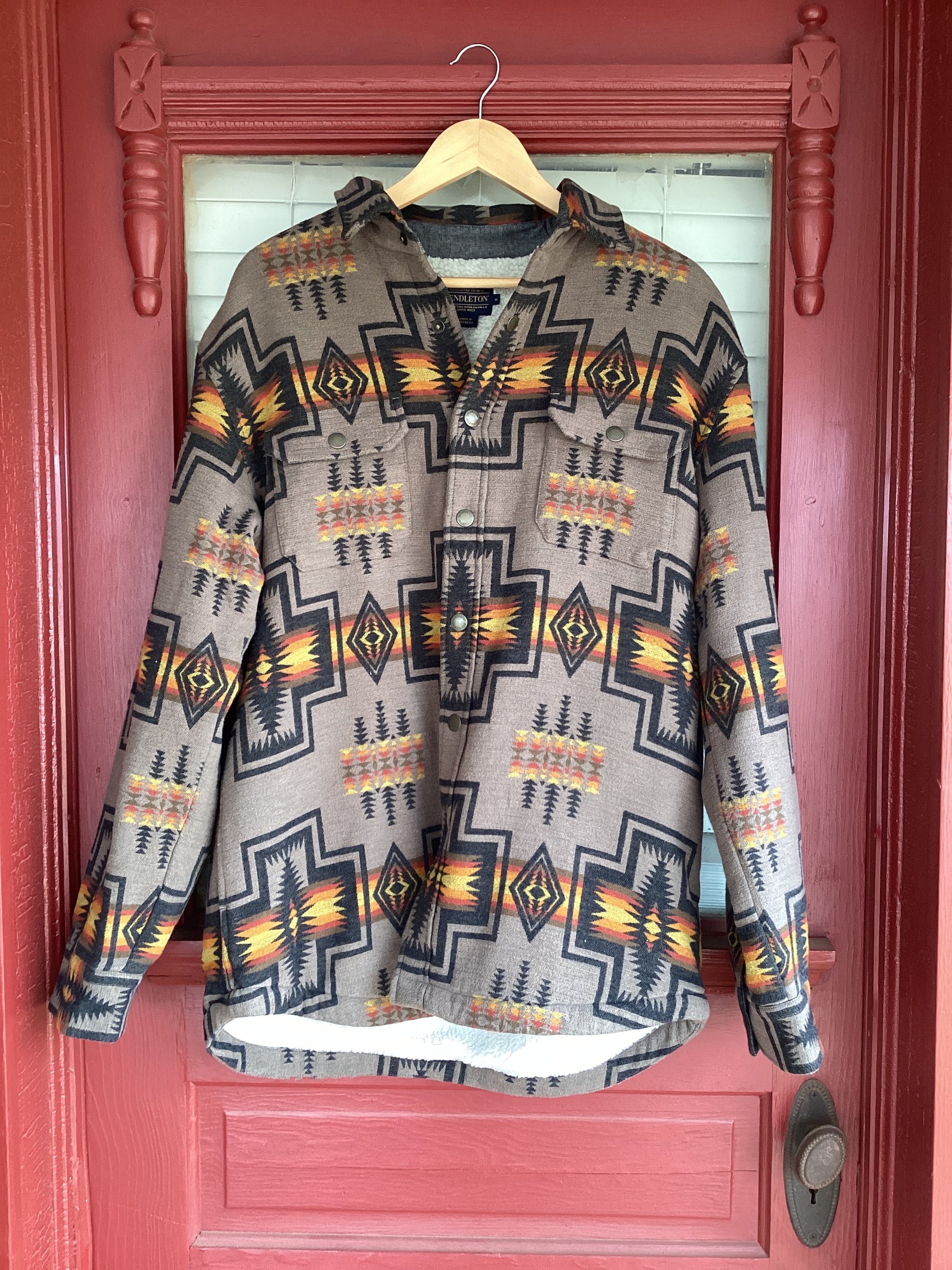 The best of two worlds: DoubleSoft Cotton Chamois shell, lined with smooth Sherpa for warmth without bulk. Machine washable, 100% cotton with 72% polyester, 28% acrylic. Two snap-close chest pockets and two side-seam pockets. Shirttail hem.