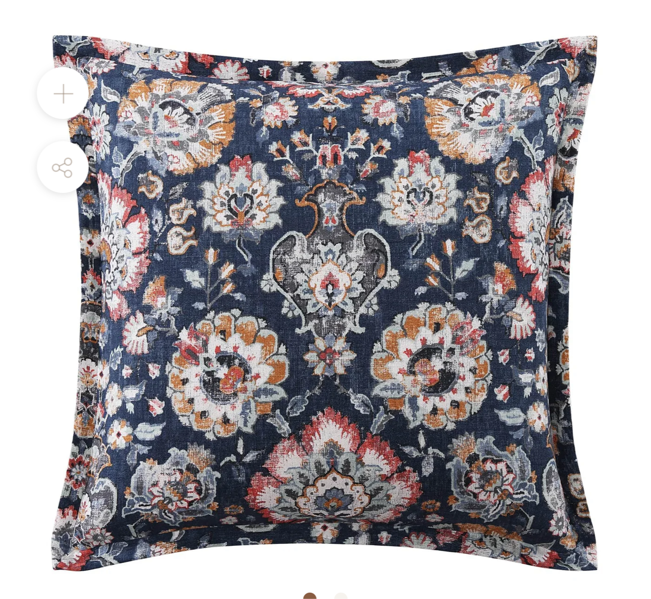 Transform your bedroom into a haven of elegance with the Derby Euro Sham, where vintage florals meet bold, modern hues. A deep navy base serves as the canvas for a traditional English floral print, enriched with Tuscan yellow and copper tones for a timeless, sophisticated look. Crafted from our signature linen blend, this euro sham combines the textured beauty of linen with easy-care practicality-machine-washable and crease-resistant for effortless upkeep. Pair it with the Stella Collection in saffron for a rich, layered aesthetic, or style it alongside our 100% French Flax Linen Railroad Stripe Duvet Cover Set or Lyocell Collection in sage for a casual yet refined ensemble that transitions seamlessly through the seasons.