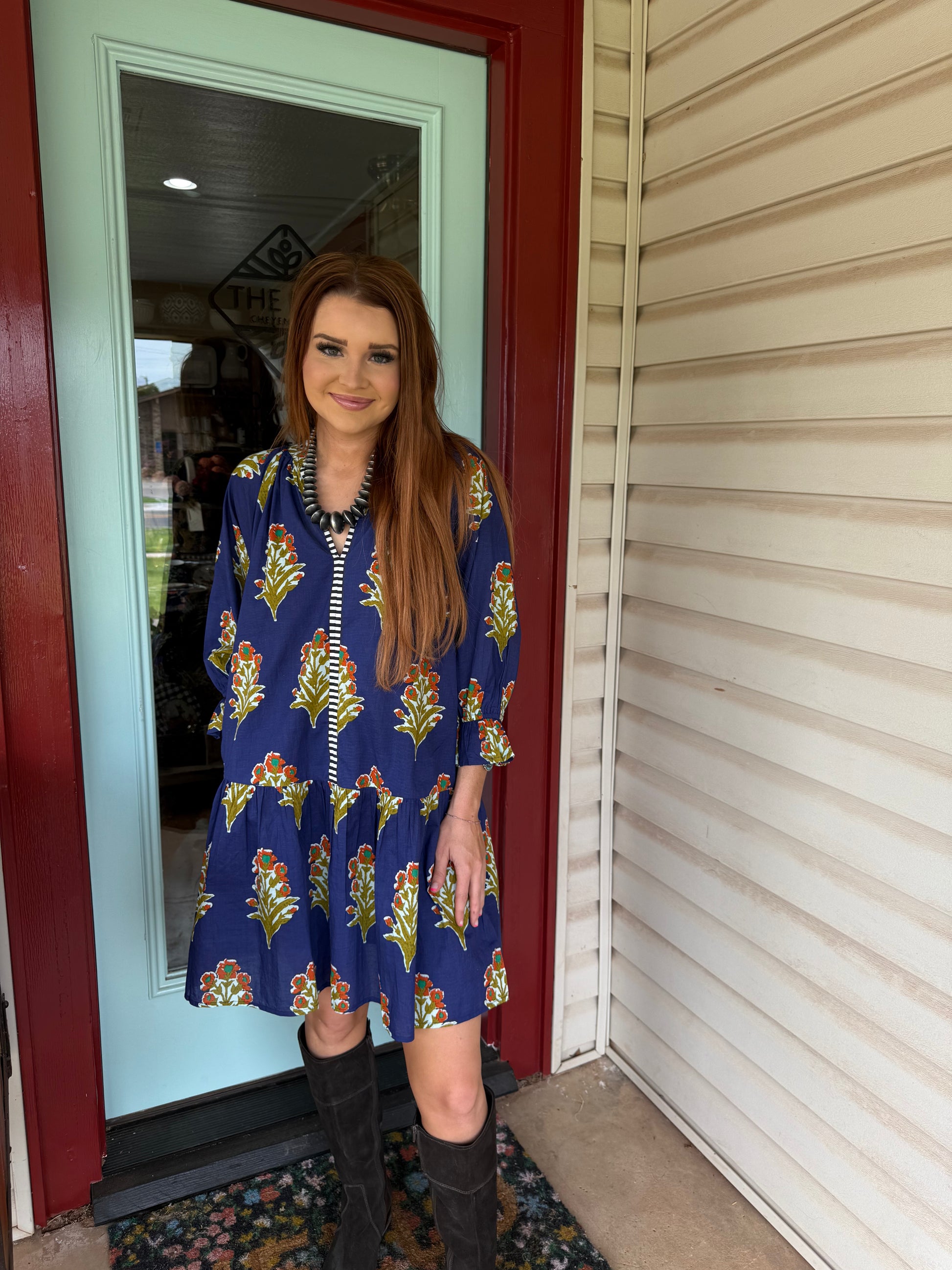 Floral Print Ruffle Sleeve Dress . / Style Measurements for Size S / Designed in USA - Body Length: 35 in - Bust Width: 42 in - Sleeve Length: 22 in . /