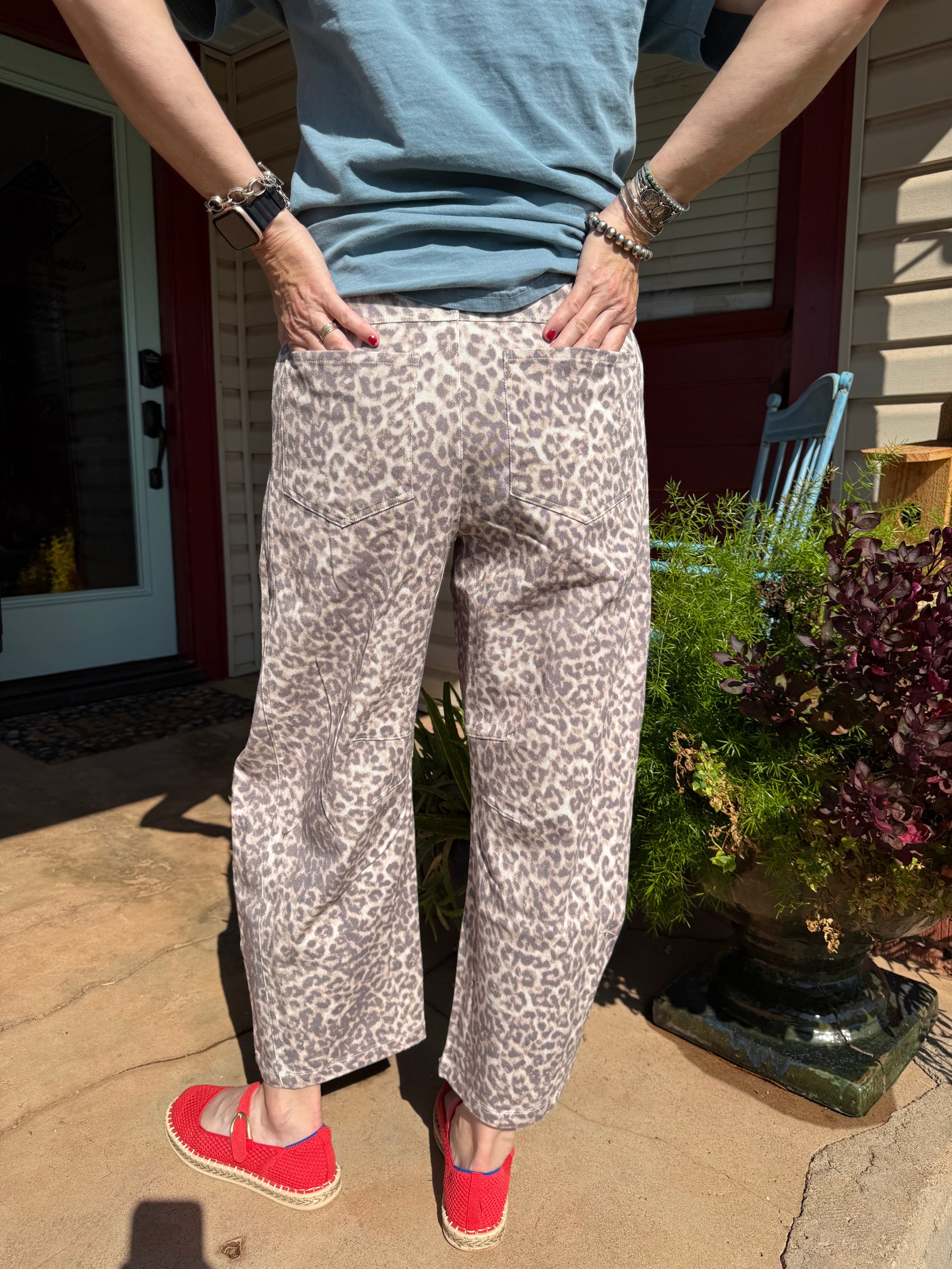Make a bold statement with these leopard print barrel jeans,designed to combine comfort and style. Featuring a relaxed fit and unique jeans are perfect for adding a touch of wild sophistication to your wardrobe.