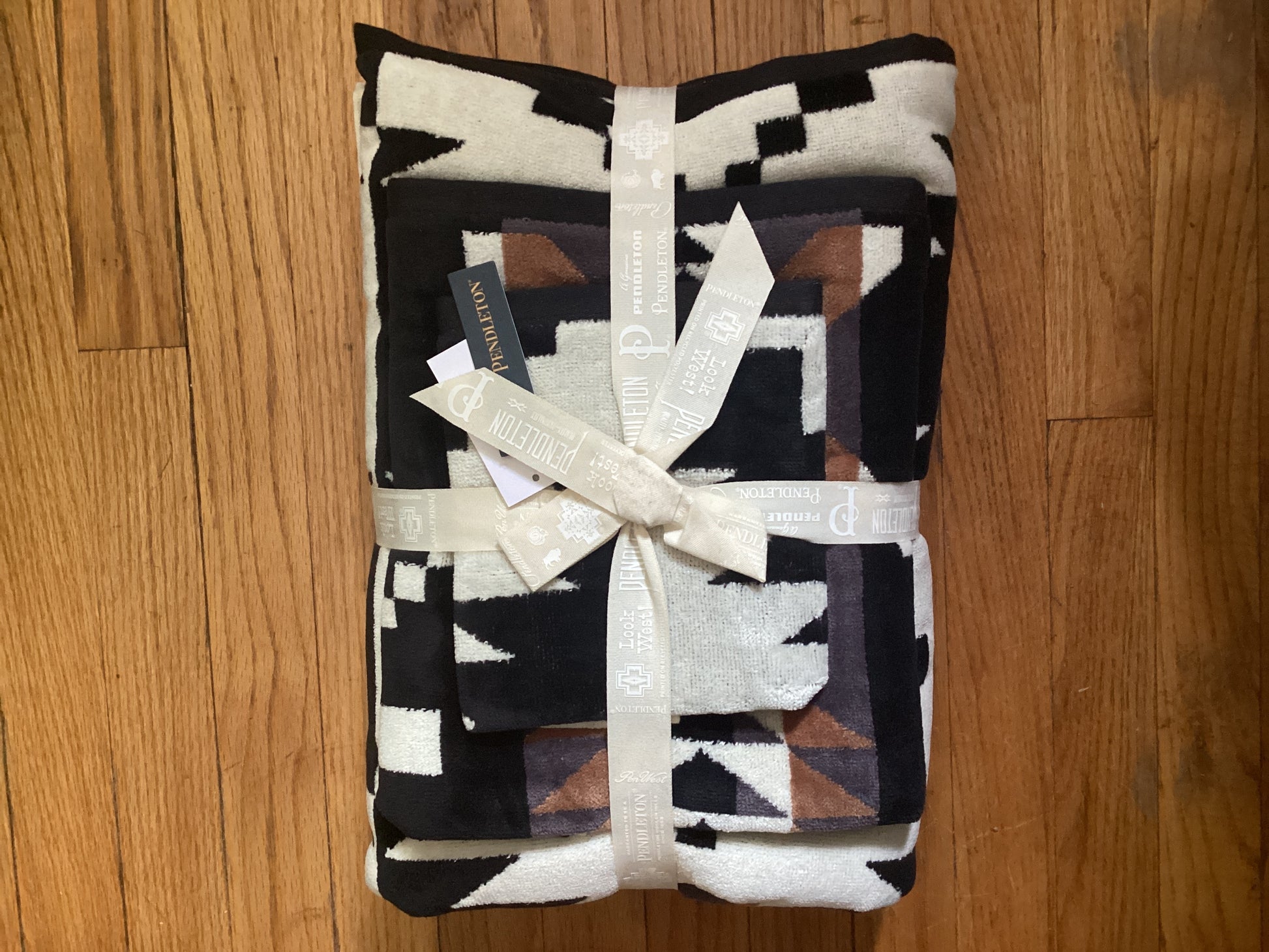 Wrap yourself in the signature quality of Pendleton with this plush three-piece towel set. Woven from soft, absorbent cotton, each piece balances everyday functionality with timeless style. The set includes a bath towel, hand towel, and washcloth—perfectly coordinated for a refined bathroom upgrade. Durable yet gentle against the skin, these towels bring comfort, luxury, and a touch of Pendleton’s classic design to your daily routine.