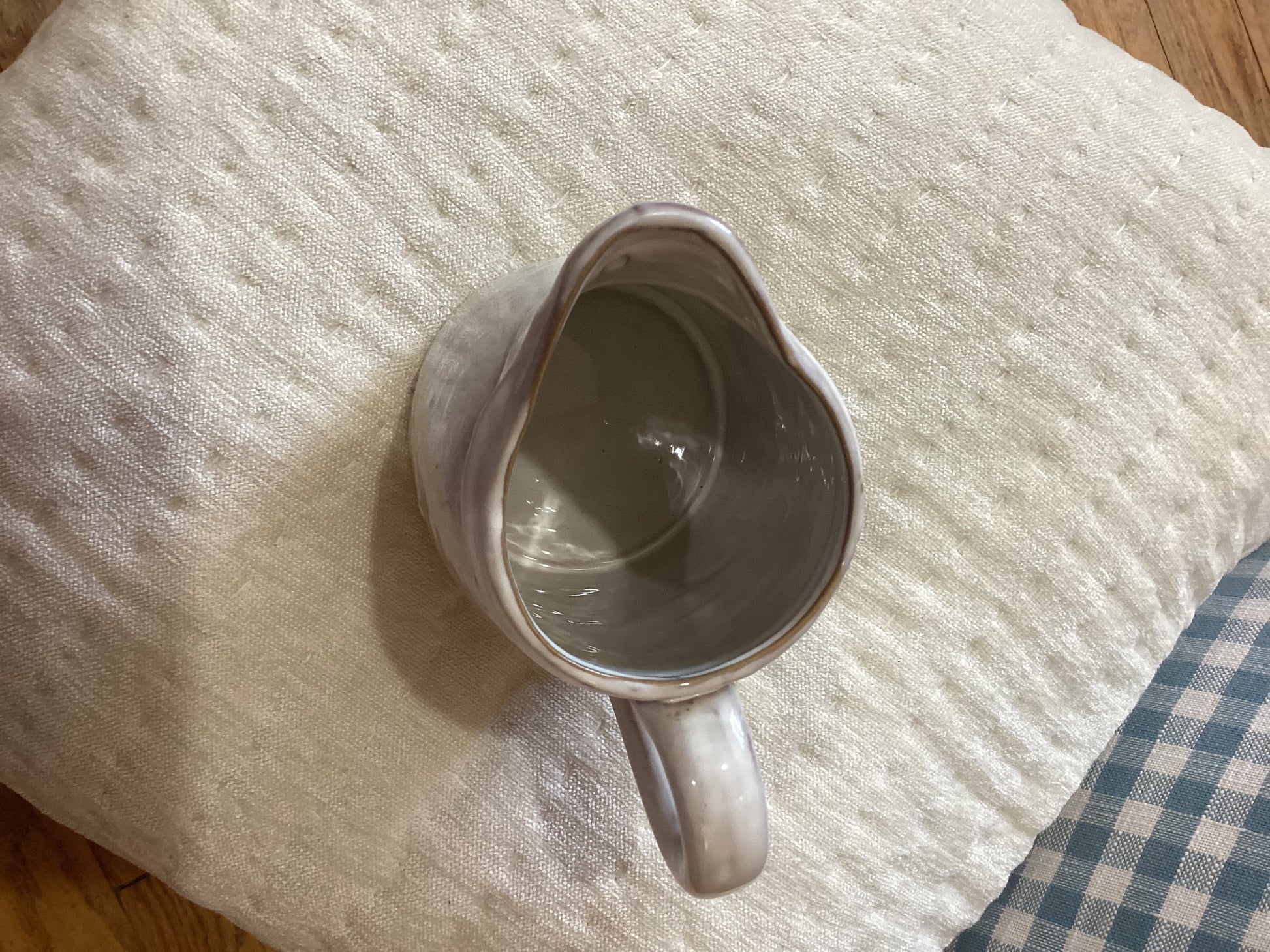 Size 6.75"L x 4"W x 6"H. Perfect sized pitcher for milk, cream, gravy, and syrup. This pitcher has a beautiful reactive glaze finish and is the perfect addition to any kitchen. Made out of stoneware and features a unique reactive glaze. Great for serving guests in a unique fashion. Each one will slightly vary. Microwave & dishwasher safe.