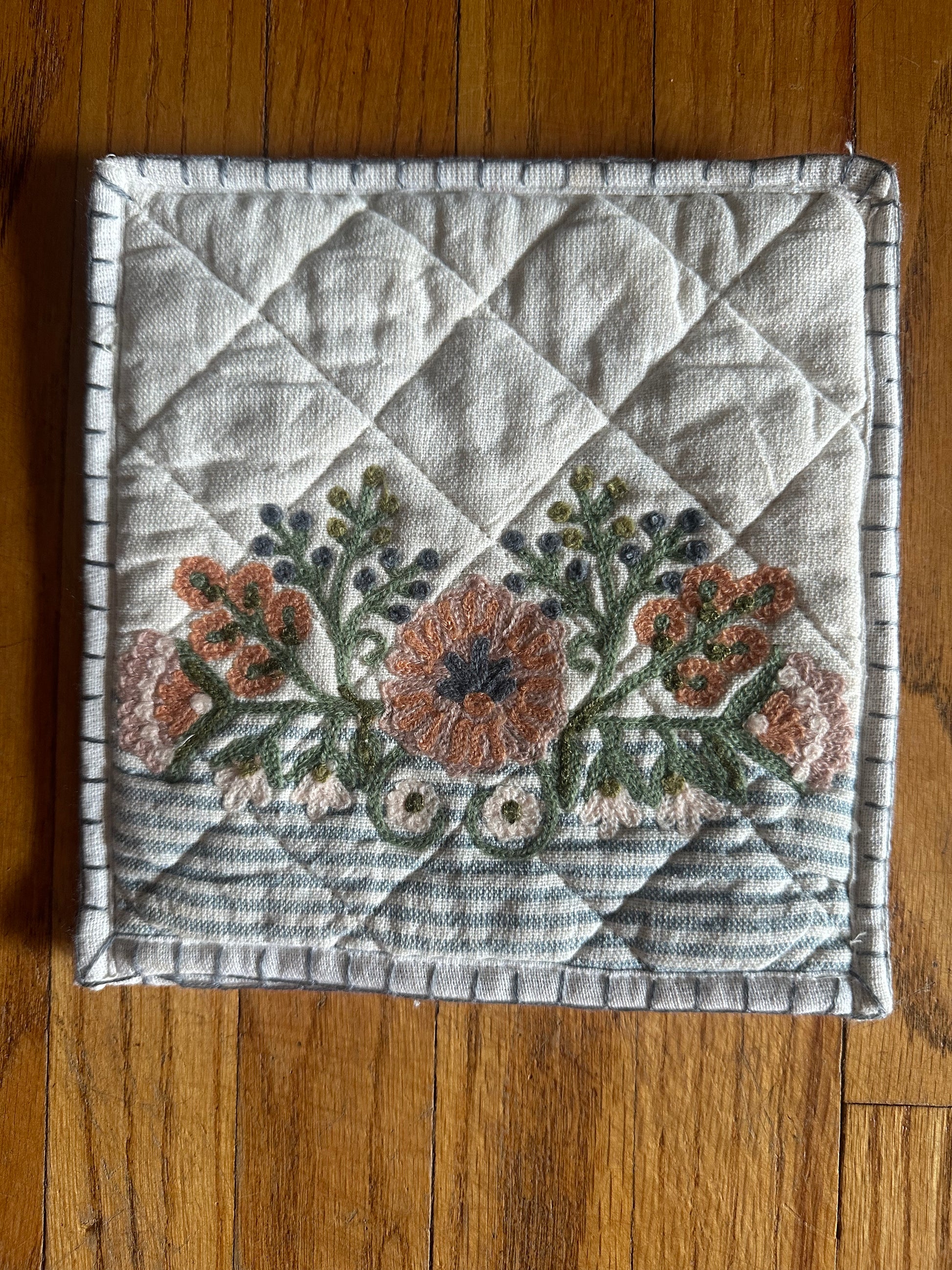 100% cotton. Machine wash. Do not expose to direct sunlight.