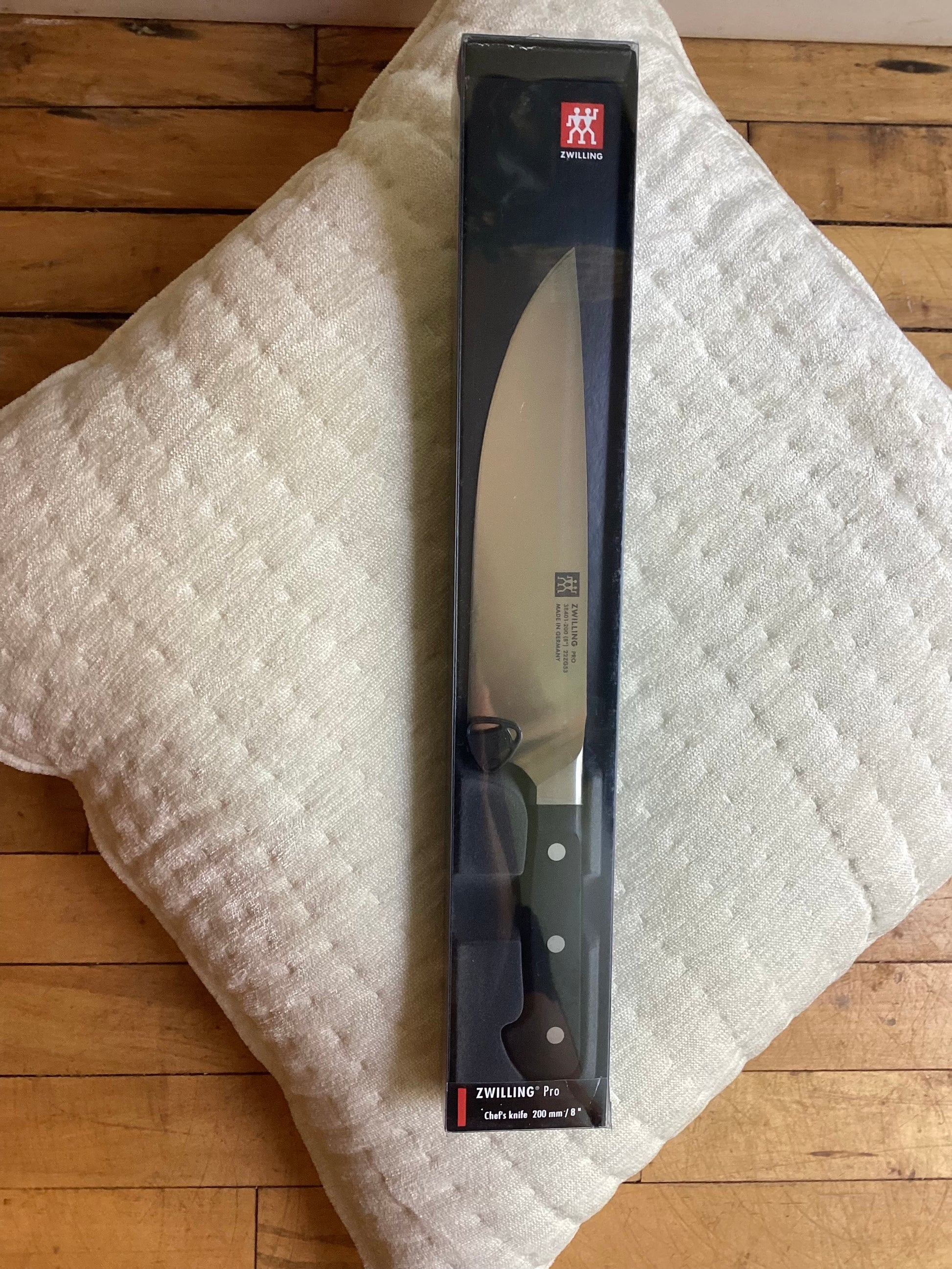 Stainless steel. Edge is precision honed and laser controlled edge is exceptionally sharp. Lifetime warranty guaranteed against end defects in materials and/or craftsmanship.